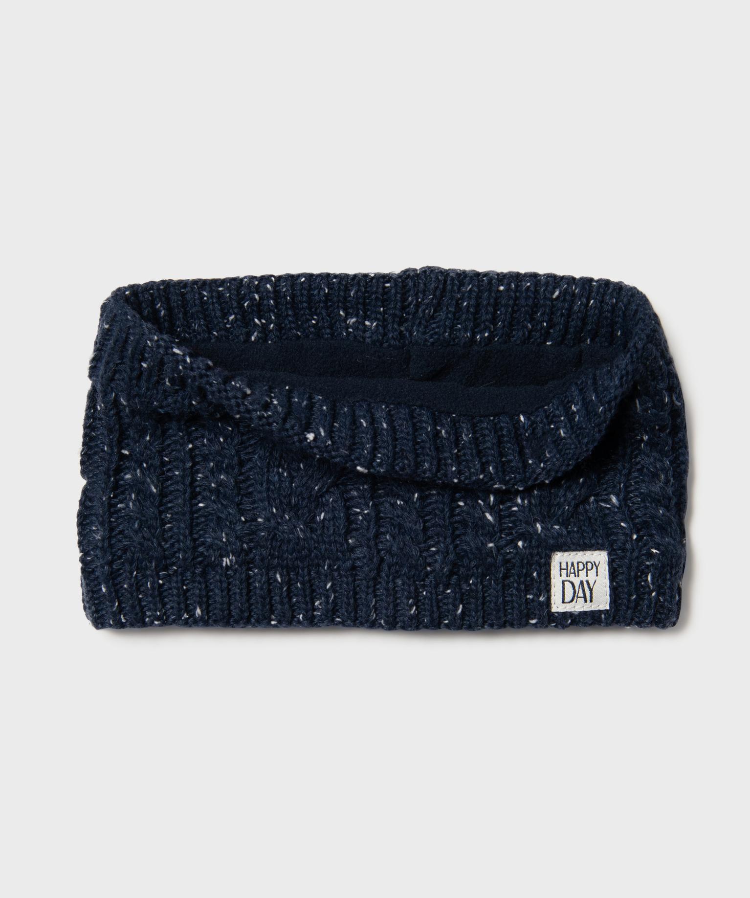 Echarpe tour de cou en maille chinée doublée polaire bébé garçon bleu fonce