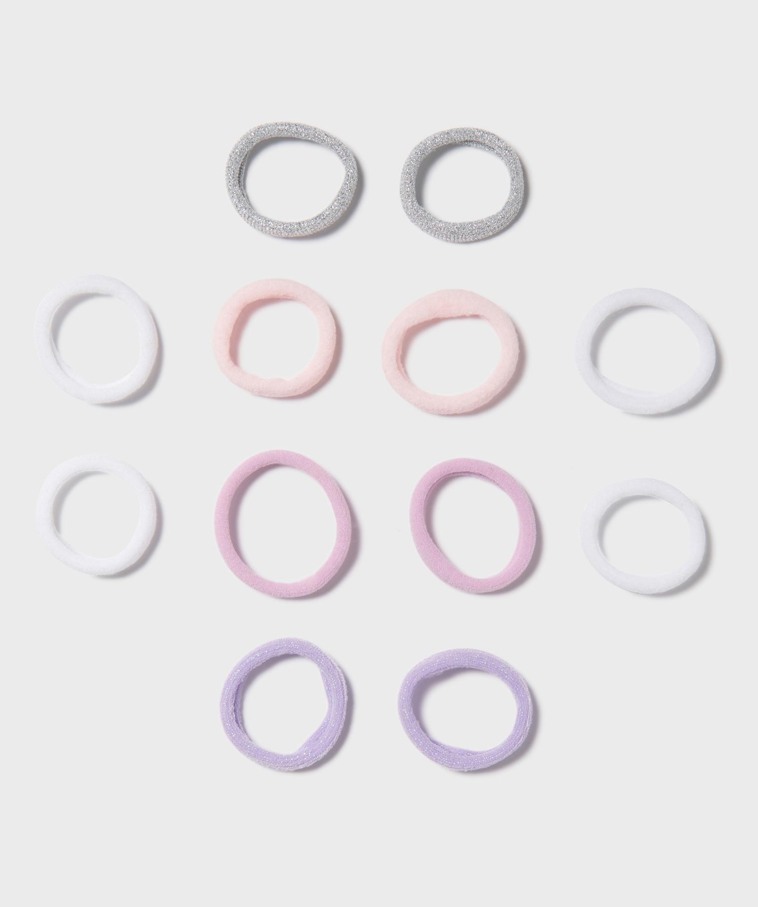 Joli assortiment d'élastiques à cheveux en mousse extensible. Une matière idéale pour attacher tous types de cheveux sans les abîmer. Le lot de 12 élastiques est composé de 5 paires d'élastiques pastel et 1 paire pailletée. 12 accessoires à cheveux pour fille à porter ensemble ou séparément.