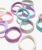 Joli assortiment d'élastiques à cheveux en mousse extensible. Une matière idéale pour attacher tous types de cheveux sans les abîmer. Le lot de 12 élastiques est composé de 5 paires d'élastiques pastel et 1 paire pailletée. 12 accessoires à cheveux pour fille à porter ensemble ou séparément.