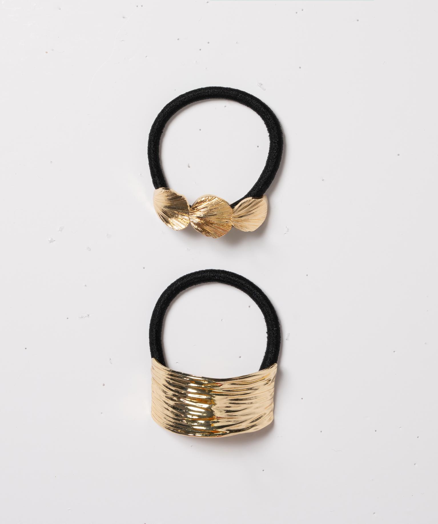 Elastiques cheveux avec bijou en métal (lot de 2) dore