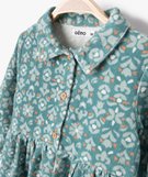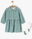 Ravissant ensemble 2 pièces spécialement conçu pour offrir confort, chaleur et style à votre enfant ! L'ensemble bébé fille comprend une robe manches longues en velours côtelé parsemé de fleurs et une paire de collants épais assorti. La robe possède un col chemise et un buste boutonné. Elle s'évase ensuite à partir de la taille. Le bas des manches est élastiqué. Les collants extensibles et chauds, affichent une ceinture élastique facile à enfiler, ainsi qu'une teinte contrastante assortie à la robe au niveau des talons et des pointes. Un charmant ensemble à porter avec des boots.