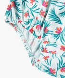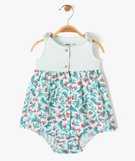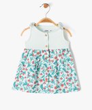 Cet ensemble 2 pièces va ravir les petites fashionistas comme les parents ! Composé d’une robe et d’une culotte assortie, cet ensemble pour bébé fille séduit par sa composition en gaze de coton et ses charmants motifs exotiques aux couleurs pétillantes. La robe possède un empiècement uni en maille côtelée sur le buste et des petits noeud cousus sur les épaules. Elle se ferme à l’aide de petits boutons aspect bois. La culotte assortie est dotée de finitions élastiques et arbore une coupe idéale pour recouvrir la couche.