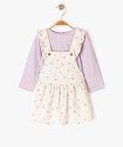 Ensemble 2 pièces bébé fille : robe + tee-shirt à manches longues ecru