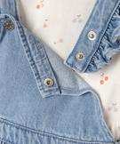 L'ensemble bébé fille prend des airs printaniers ! Avec sa jolie robe en denim fleuri aux bretelles volantées et son tee-shirt à manches longues, cet ensemble 2 pièces est idéal dès les premiers beaux jours. Coquet, l'ensemble est aussi pratique grâce aux 2 boutons-pression dans le dos qui facilitent l'enfilage du tee-shirt, ainsi que la taille élastiquée et les bretelles réglables sur 2 positions de la robe. Deux pièces à porter ensemble ou séparément.