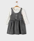 Ensemble 2 pièces bébé fille tee-shirt et robe en jean gris