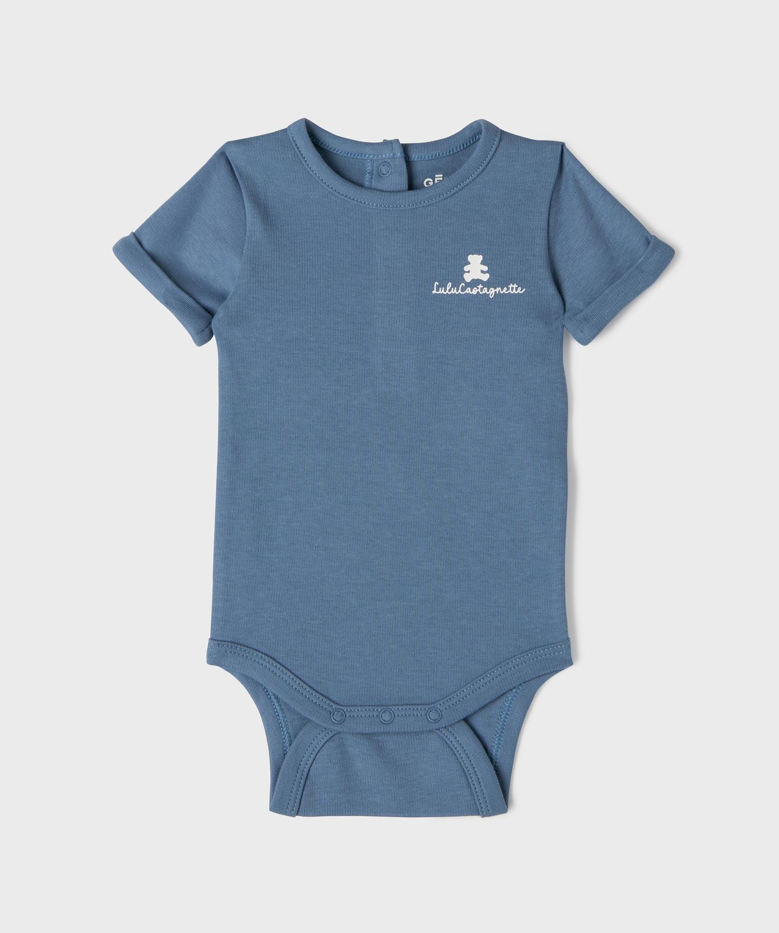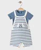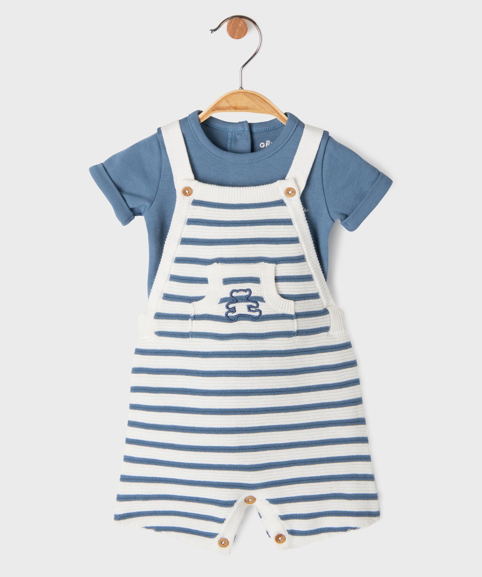 Ensemble 2 pièces bébé garçon salopette en maille et body - LuluCastagnette bleu