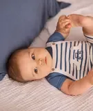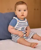 Spécialement conçu pour les tout-petits, cet ensemble LuluCastagnette garantit à votre petit garçon un look marin craquant ! Un ensemble bébé garçon composé d’une salopette courte rayée en maille, avec poche kangourou sur l’avant ornée d’un ourson brodé, de bretelles ajustables sur 2 positions et de boutons à l’entrejambe. Elle se porte sur un élégant body à manches courtes à revers cousus fermé par des boutons pression dans le haut du dos, agrémenté d’une discrète inscription sur la poitrine. Un ensemble 2 pièces plein de charme idéal pour l’été et les sorties en bord de mer.