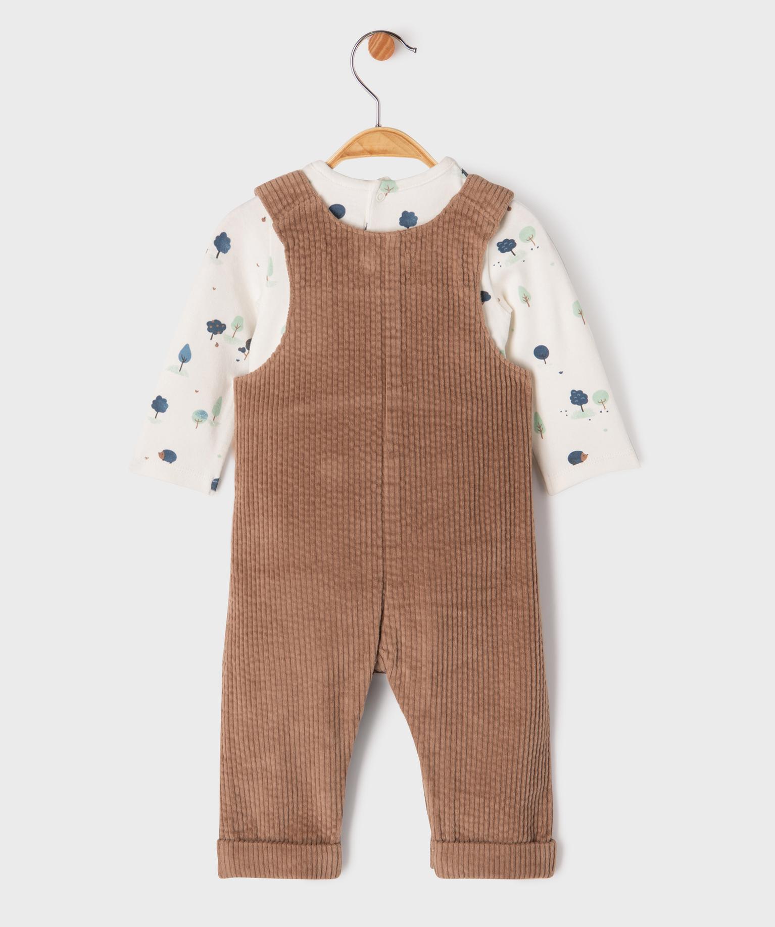 Ensemble 2 pièces bébé garçon salopette en velours et body manches longues marron