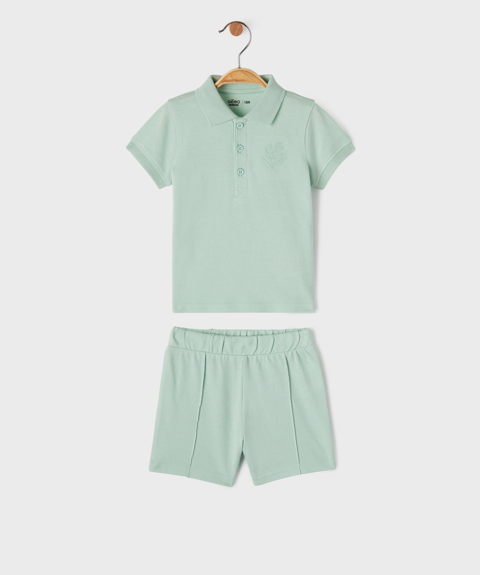 Ensemble 2 pièces bébé garçon short et polo vert clair