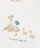 Offrez à votre bout de chou un ensemble pratique et confortable au look craquant ! Un ensemble bébé en maille nid d’abeille 100% coton, particulièrement agréable à porter en saison estivale. Il se compose d’un tee-shirt à manches longues doté boutons pression dans le dos pour faciliter l’habillage, et d’un legging avec ceinture élastique. Les deux pièces sont décorées d’adorables petits canards. Cet ensemble 2 pièces est conçu pour accompagner votre enfant dans sa croissance, il possède des revers aux poignets, à la taille et en bas des jambes qui peuvent se déplier pour habiller bébé plus longtemps. Un ensemble bébé mixte porter avec avec une paire de tennis en toile.