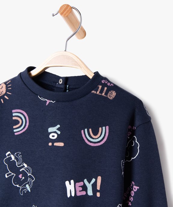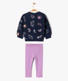 Un chouette ensemble bébé fille de 2 pièces basiques déclinées dans un motif d'inspiration vintage pour un look original. Un ensemble composé d'un sweat en jersey molletonné ultra doux et d'un legging en maille côtelée pour un confort absolu. Sweat avec finition bord-côte au col, aux poignets et dans le bas. 2 boutons-pression au dos pour faciliter le passage de la tête. Legging à taille élastiquée et finition froncée en bas des jambes.