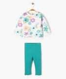 Un chouette ensemble bébé fille de 2 pièces basiques déclinées dans un motif d'inspiration vintage pour un look original. Un ensemble composé d'un sweat en jersey molletonné ultra doux et d'un legging en maille côtelée pour un confort absolu. Sweat avec finition bord-côte au col, aux poignets et dans le bas. 2 boutons-pression au dos pour faciliter le passage de la tête. Legging à taille élastiquée et finition froncée en bas des jambes.
