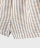 - un short à rayures assorti, coupe droite et taille élastiquée.
