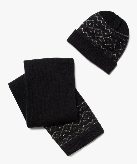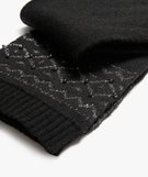 Ensemble 2 pièces bonnet + écharpe à paillettes et perles femme noir
