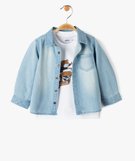 Ensemble 2 pièces : chemise en jean + tee-shirt manches longues bébé garçon bleu clair