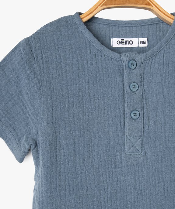 Ensemble 2 pièces en gaze de coton bébé garçon short + tee-shirt bleu vif