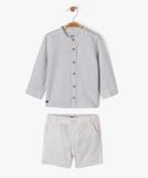 Ensemble 2 pièces en lin chemise + short bébé garçon bleu