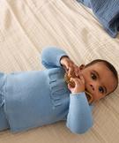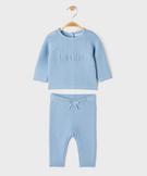 Ensemble 2 pièces en maille bébé : pull et pantalon - LuluCastagnette bleu