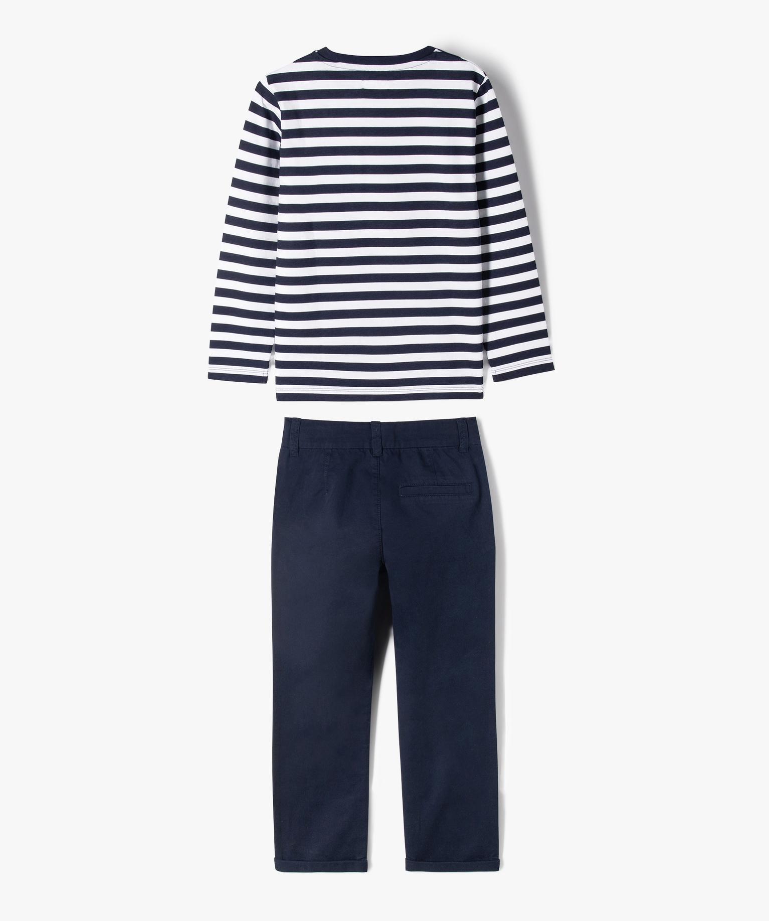 Ensemble 2 pièces pantalon chino + tee-shirt manches longues garçon navy