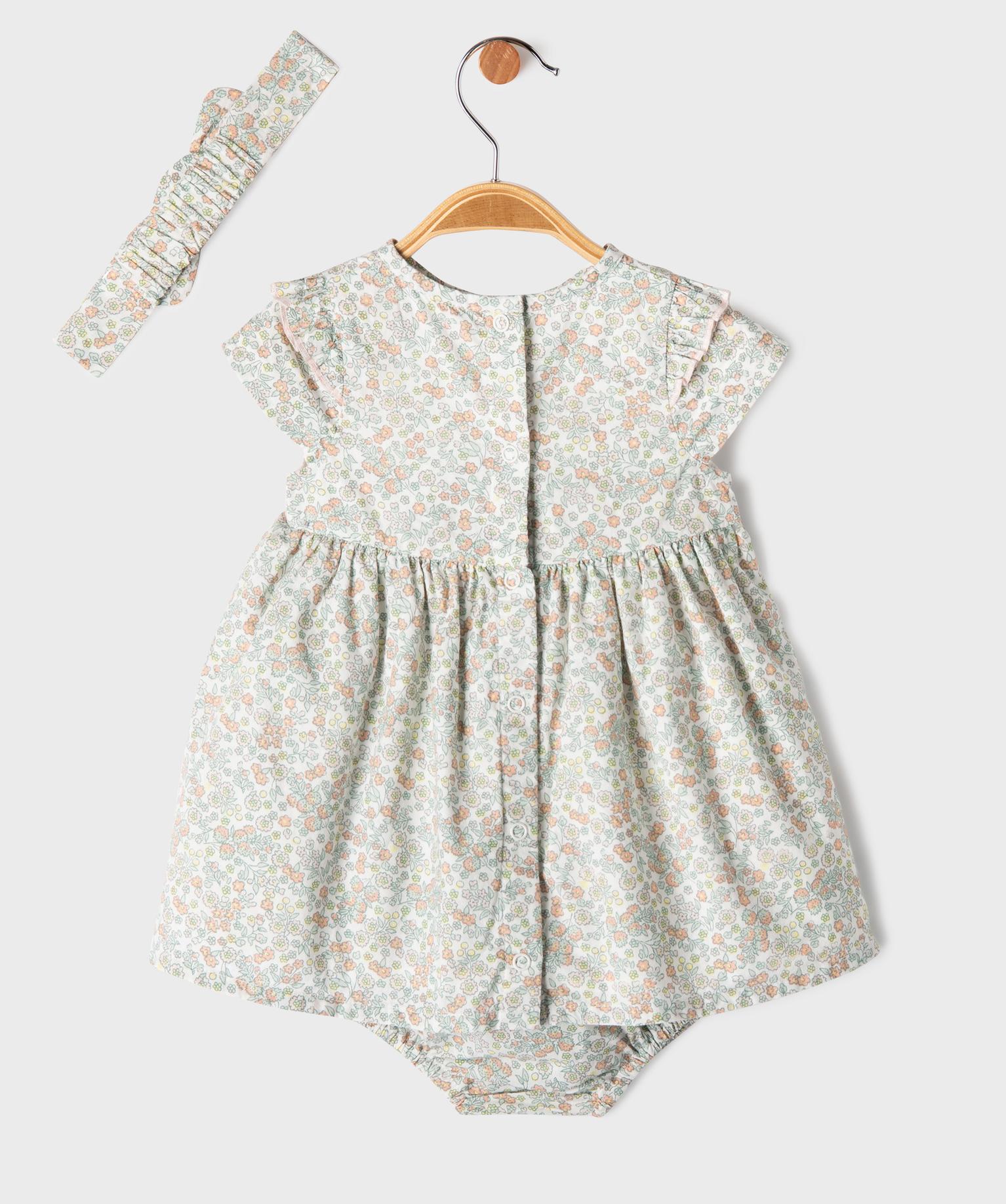 Ensemble 2 pièces robe + bloomer + bandeau bébé fille - LuluCastagnette vert