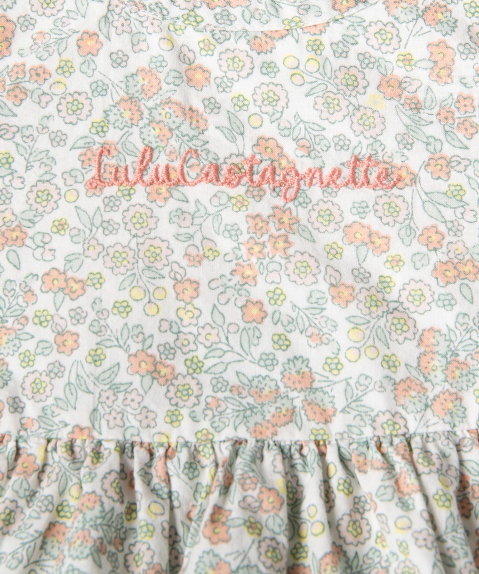 Pour votre fillette ou comme cadeau de naissance, vous ne résisterez pas à ce charmant ensemble 3 pièces bébé fille LuluCastagnette en toile de coton fleuri. La robe possède des manches extra courtes et volantées, une doublure pour le confort, une broderie Lulu sur la poitrine et des fronces à la taille. Elle se ferme facilement au dos avec des boutons pressions. Le bloomer assorti, à taille et cuisses élastiquées, assure un ajustement parfait et une grande liberté de mouvement. On craque pour les petits volants à la taille. Le bandeau avec nœud sur le dessus et élastique de maintien sur le dessous complète ce trio adorable et pratique pour toutes les sorties de bébé.