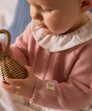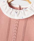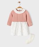 Ce charmant ensemble bébé fille LuluCastagnette comprend une robe effet 2-en-1 et des collants assortis. La robe présente un buste façon pull en maille fantaisie qui se prolonge par une jupe en velours côtelé fleuri. La robe est rehaussée d’un col volanté en velours coordonné. Trois boutons dans le dos facilitent l’habillage. Le collant uni, épais et confortable, complète parfaitement cette tenue raffinée. Un look craquant, une idée cadeau idéale !