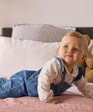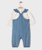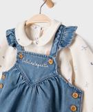 Ensemble 2 pièces salopette en jean + body manches longues col Claudine bébé fille bleu clair