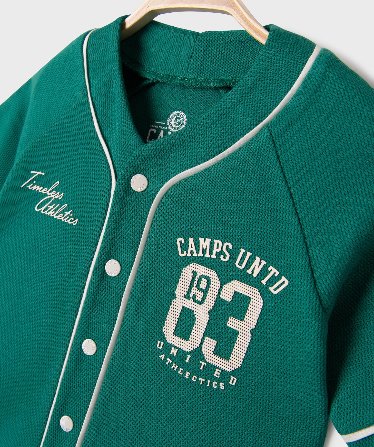 Camps United signe ici un adorable ensemble bébé garçon directement inspiré de l'univers du baseball ! L'ensemble se compose d'un tee-shirt manches courtes boutonné et d'un short en maille piquée 100% coton, agrémentés d'une finition biais contrastant et d'inscriptions sportswear. Le tee-shirt présente des emmanchures raglan, un col V et une boutonnière pressionnée. Le short est doté d'une taille élastiquée ajustable par cordon coulissant. Les détails, les finitions et la coupe apportent à ce charmant ensemble un esprit sport et vintage.
