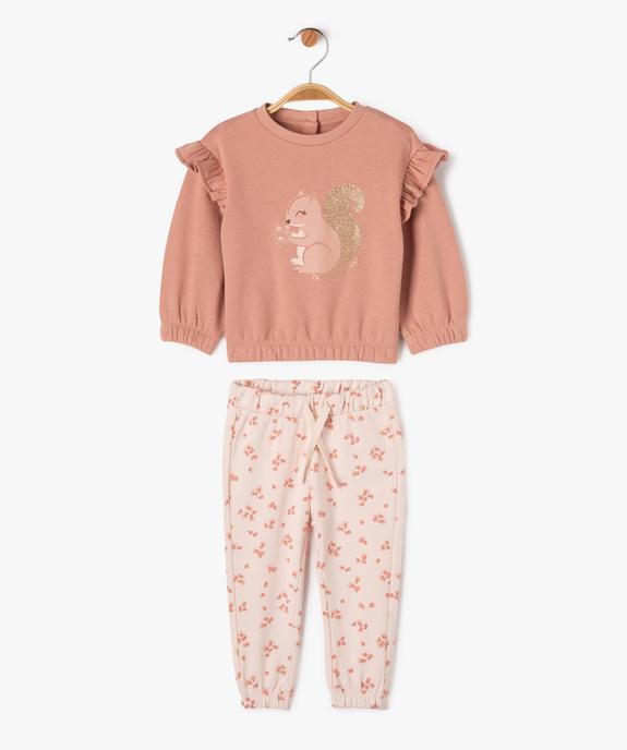 Ensemble 2 pièces sweat et pantalon en molleton bébé fille rose chine