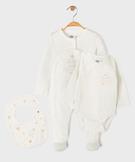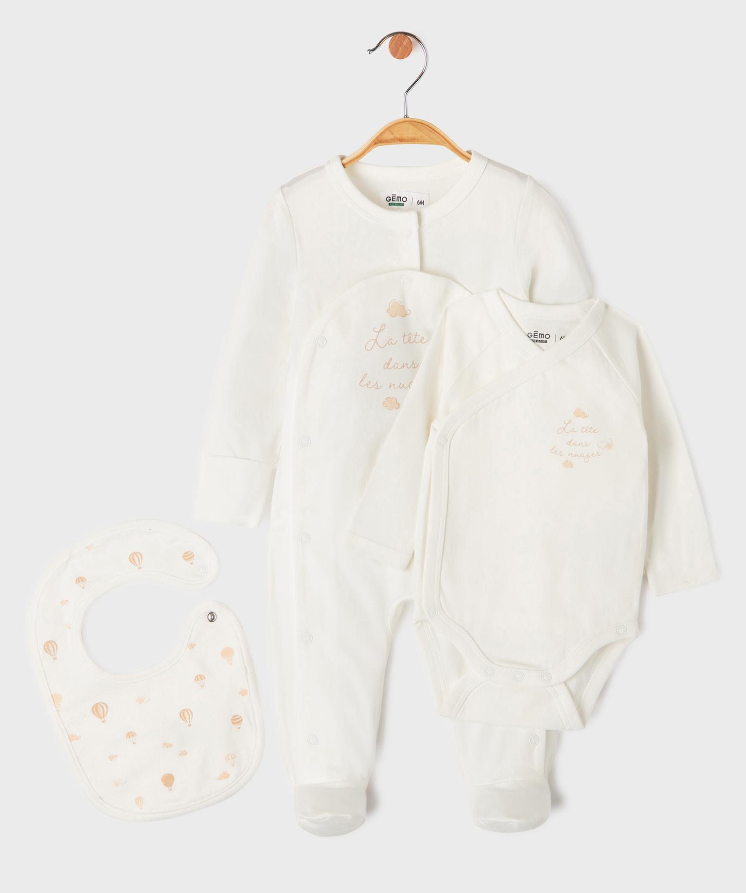 Ensemble 3 pièces bavoir, body et pyjama bébé blanc