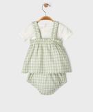 Ensemble 3 pièces bébé fille body, blouse et culotte vert