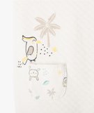 Petit Béguin et Gémo vous proposent ici un adorable ensemble 2 pièces à glisser dans la valise de maternité pour son confort et son charme. L'ensemble comprend un body à manches longue et une combinaison à pieds, sans manches en maille texturée. Le body est entièrement imprimé d'un motif fantaisie que l'on retrouve placé sur les poches de la combi. Il possède des boutons-pression au dos et à l'entrejambe pour un habillage facile. Le col rond est souligné d'un biais uni. La combinaison s'enfile tout aussi facilement grâce à ses bretelles et son entrejambe pressionnés.