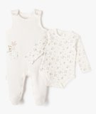 Ensemble bébé 2 pièces : body manches longues + combinaison sans manches - Petit Béguin blanc