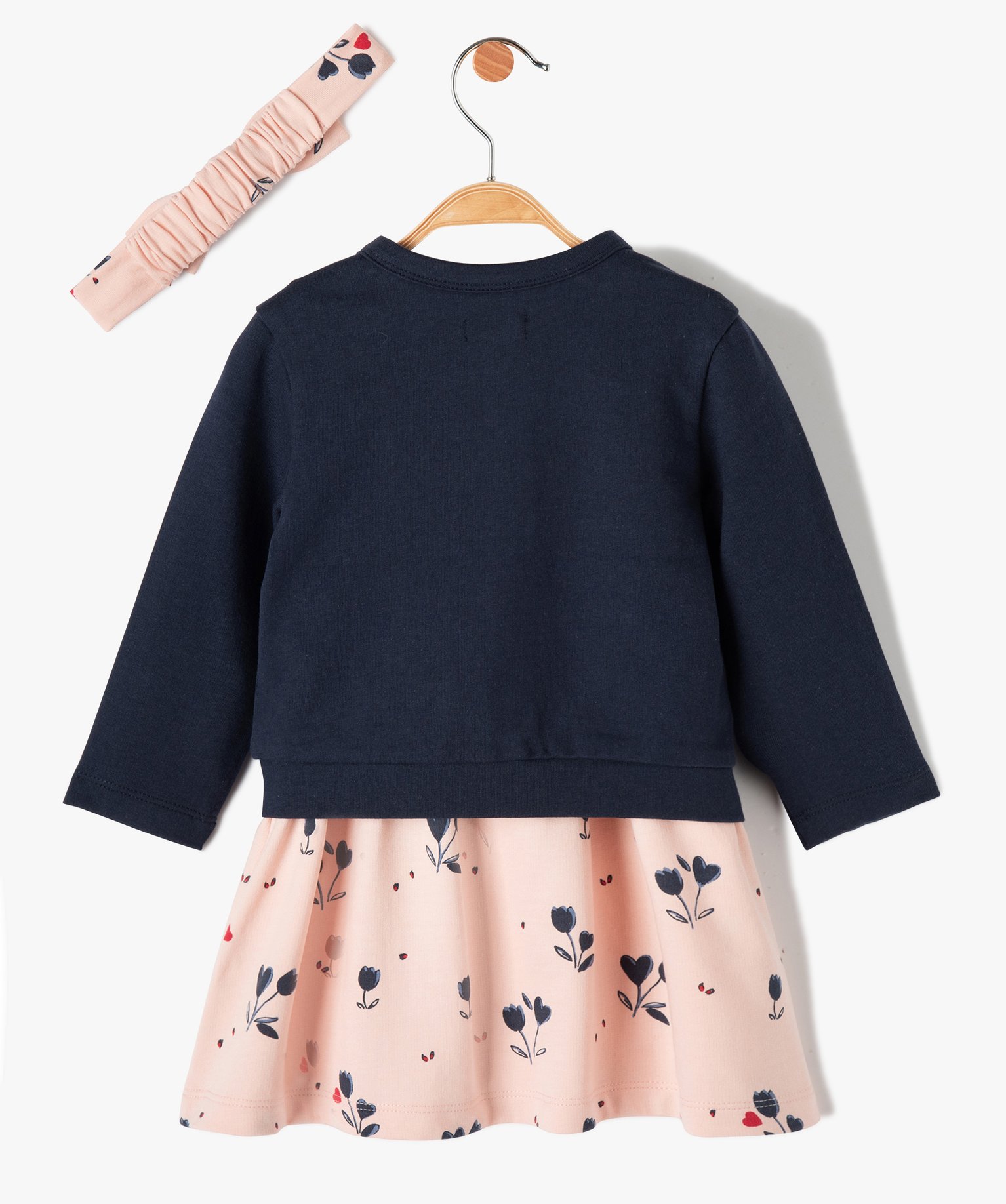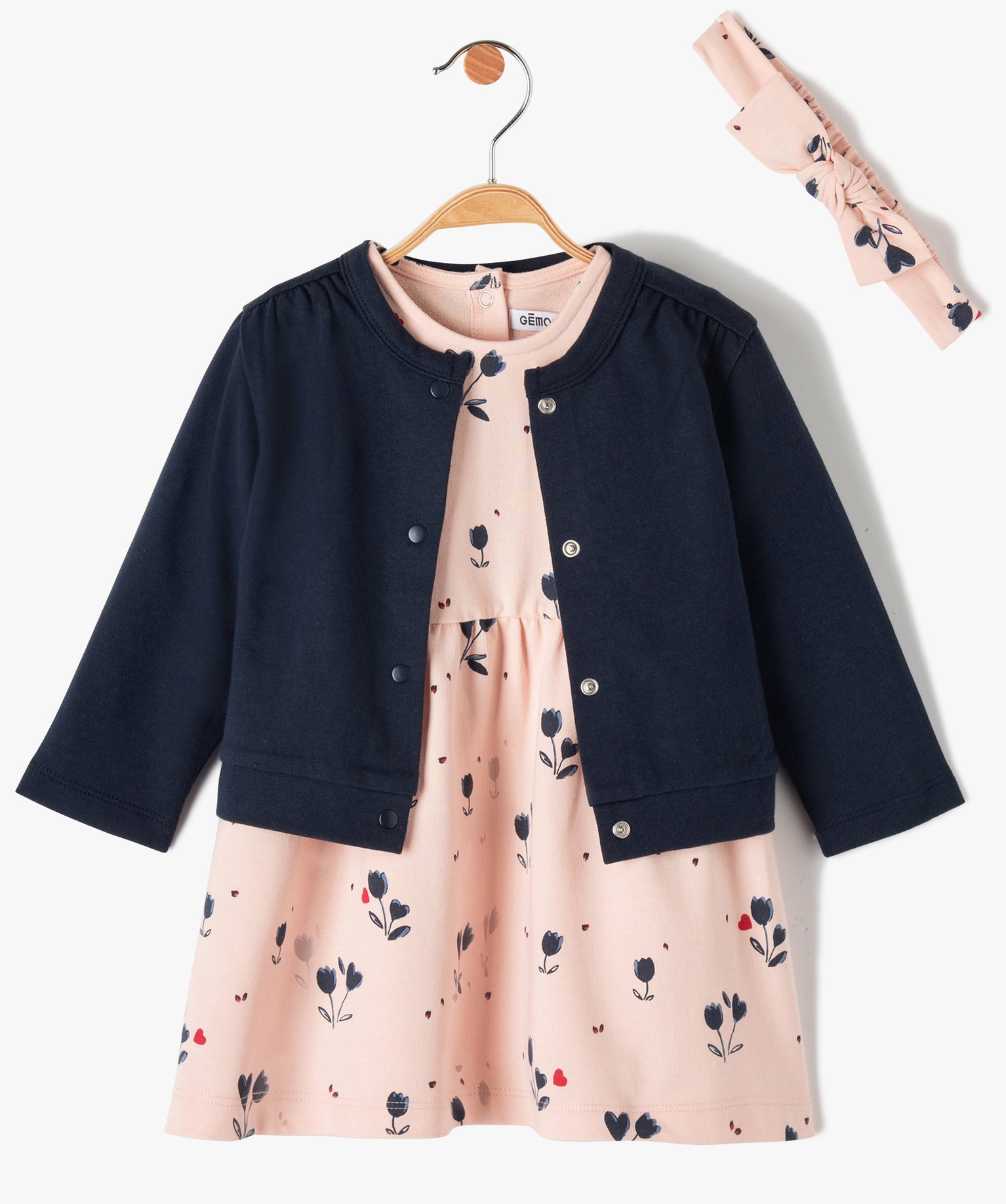 Ensemble bébé fille 2 pièces : robe + gilet rose