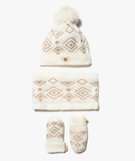 Très bel ensemble de 3 pièces chaudes idéales pour composer un kit anti-froid à votre enfant ! Un ensemble bébé fille LuluCastagnette en jacquard rehaussé de fil brillant qui illuminera les manteaux et doudounes. Cet ensemble hiver se compose :