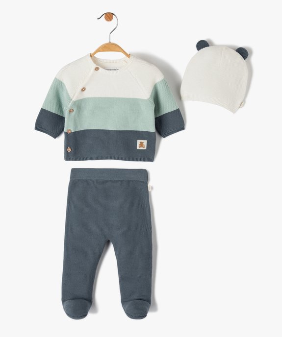 Ensemble bébé layette 3 pièces : brassière + pantalon + bonnet - LuluCastagnette bleu