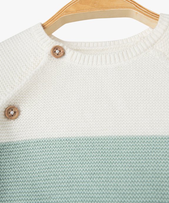 - une brassière multicolore à manches longues, ouverture boutonnée croisée, emmanchures raglan, finition bord-côte et petite étiquette Lulu cousue dans le bas ;