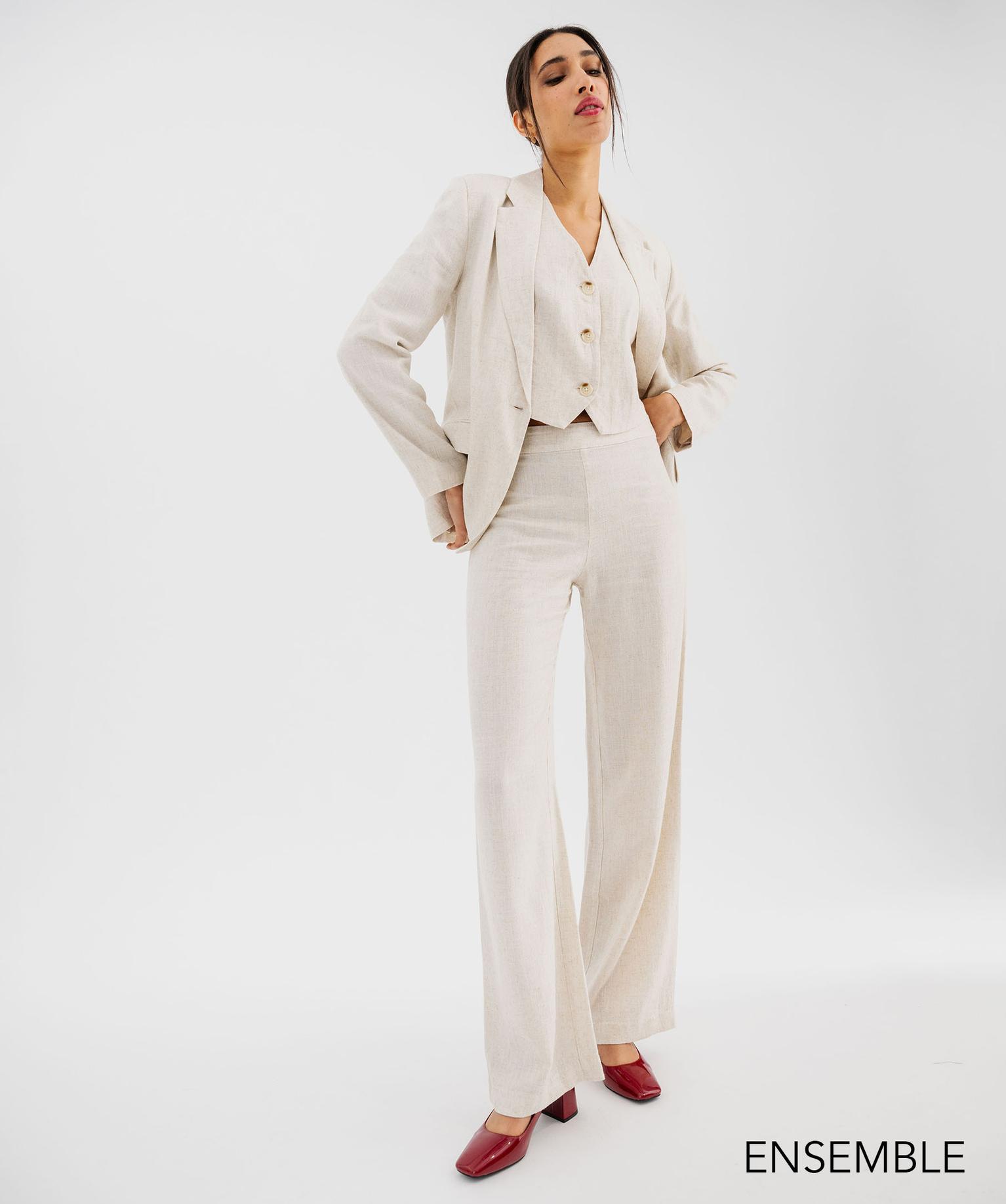 Ensemble de costume 3 pièces en viscose et lin pour femme