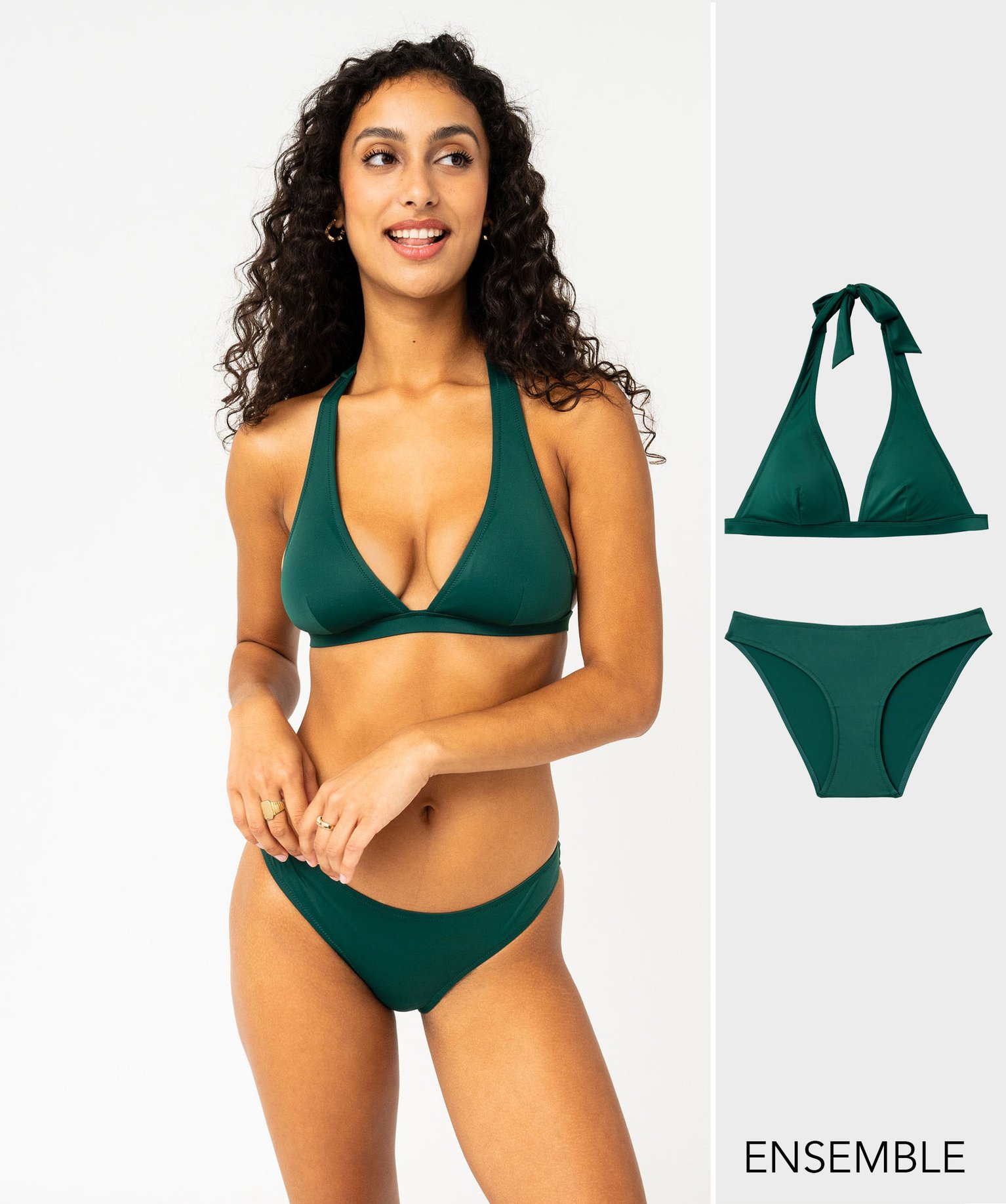 Optez pour un look tendance avec notre maillot deux pièces vert en forme triangle pour femme. Son design moderne et sa coupe flatteuse mettent en valeur votre silhouette avec style. Idéal pour bronzer et vous détendre à la plage ou au bord de la piscine cet été.