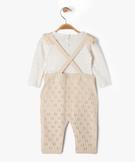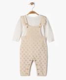 Ensemble de naissance 2 pièces salopette et body manches longues beige