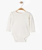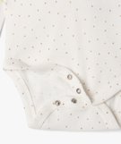 - 1 body manches longues en coton parsemé de pois, avec entrejambe et haut de dos pressionnés pour faciliter l'habillage et le change ;