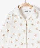 - un élégant pyjama en flanelle 100% coton, avec chemise boutonnée et pantalon à taille élastique, entièrement parsemé de flocons de neige dorés ;