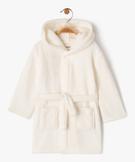 - une robe de chambre en maille peluche dans un coloris assorti, avec capuche, poches plaquées et liens à nouer.