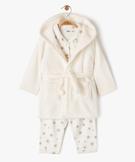 Ensemble de nuit 3 pièces spécial Noël : pyjama + robe de chambre fille ecru