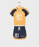 Ensemble de sport bébé garçon tee-shirt et short — Camps United jaune fonce