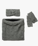 Ensemble femme 3 pièces : tour de cou + headband + mitaines à paillettes gris clair