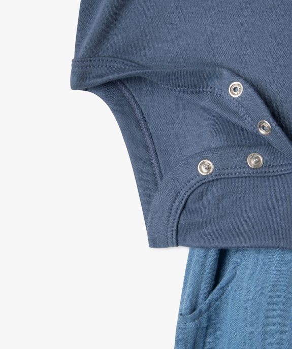 Ensemble naissance 2 pièces pantalon et body bébé garçon - LuluCastagnette bleu