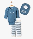 Ensemble naissance évolutif 3 pièces : body, legging et bavoir bleu
