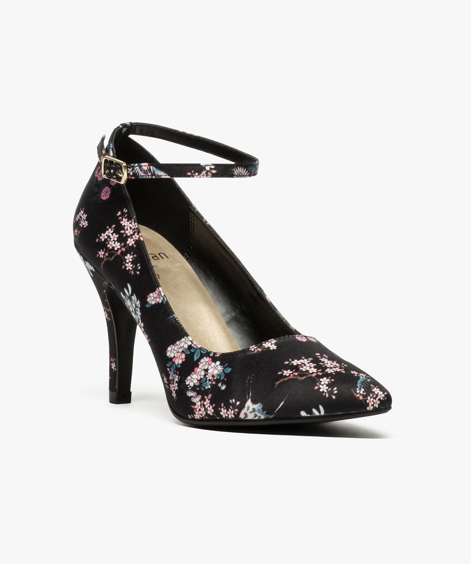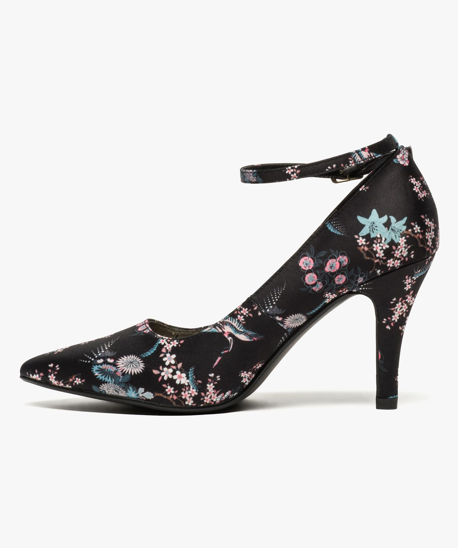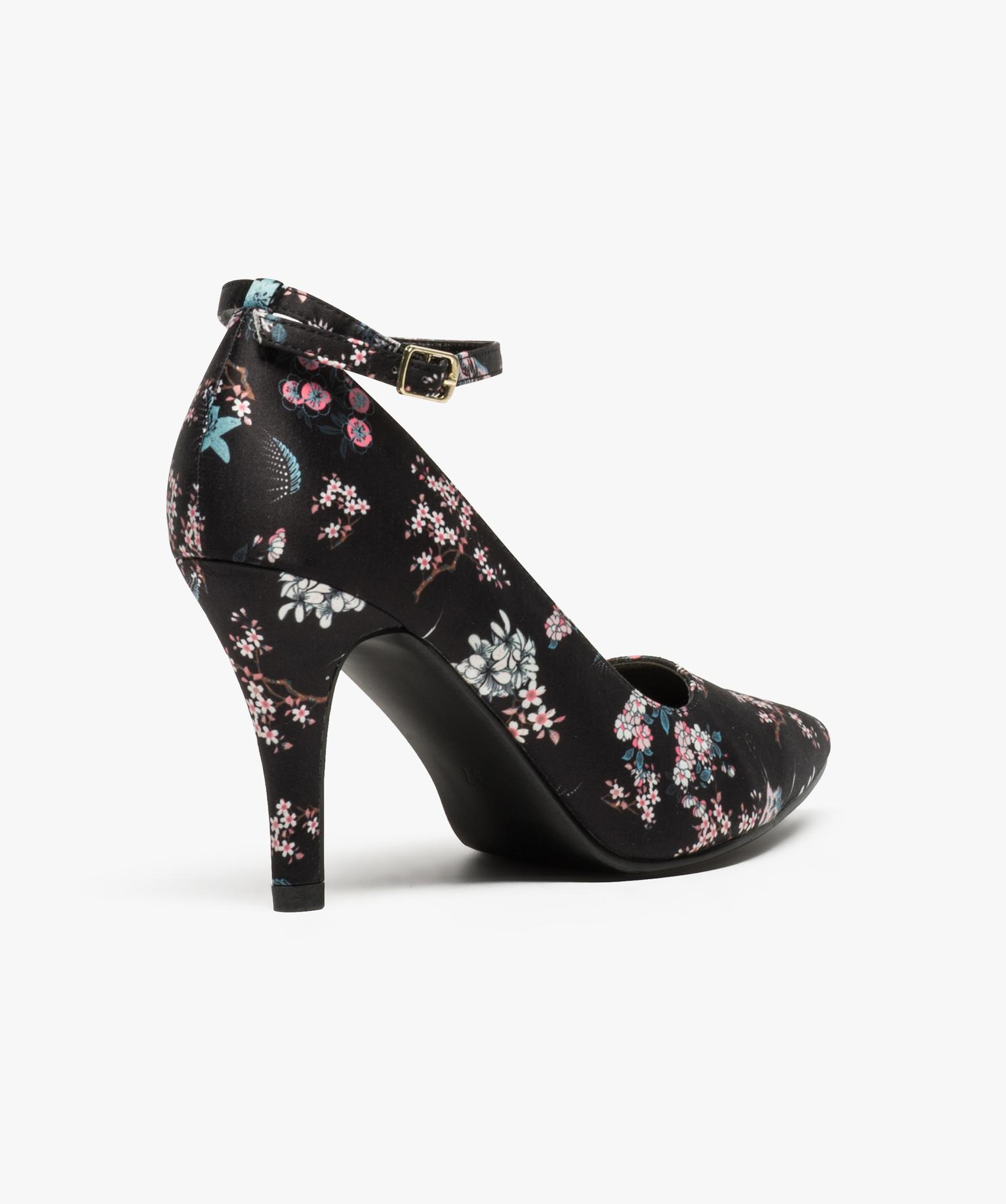 Escarpin fleuri à bride de cheville multicouleur
