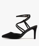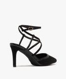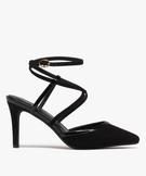 Apportez une touche de sophistication à vos tenues de soirée avec ces escarpins à bout pointu, parfaits pour les grandes occasions. Alliant une tige en suédine et vernis pour une combinaison élégante de textures, ces escarpins se distinguent par leur talon ouvert et leurs brides croisées sur le dessus du pied et à la cheville. La fermeture par boucle ardillon, agrémentée d’un élastique d'aisance, assure un ajustement confortable et sécurisé. Dotés d’un talon fin et haut de 9 cm, ces escarpins allongent subtilement la silhouette, tandis que la semelle intérieure moussée garantit un confort durable. Des escarpins parfaits pour un look chic et raffiné.